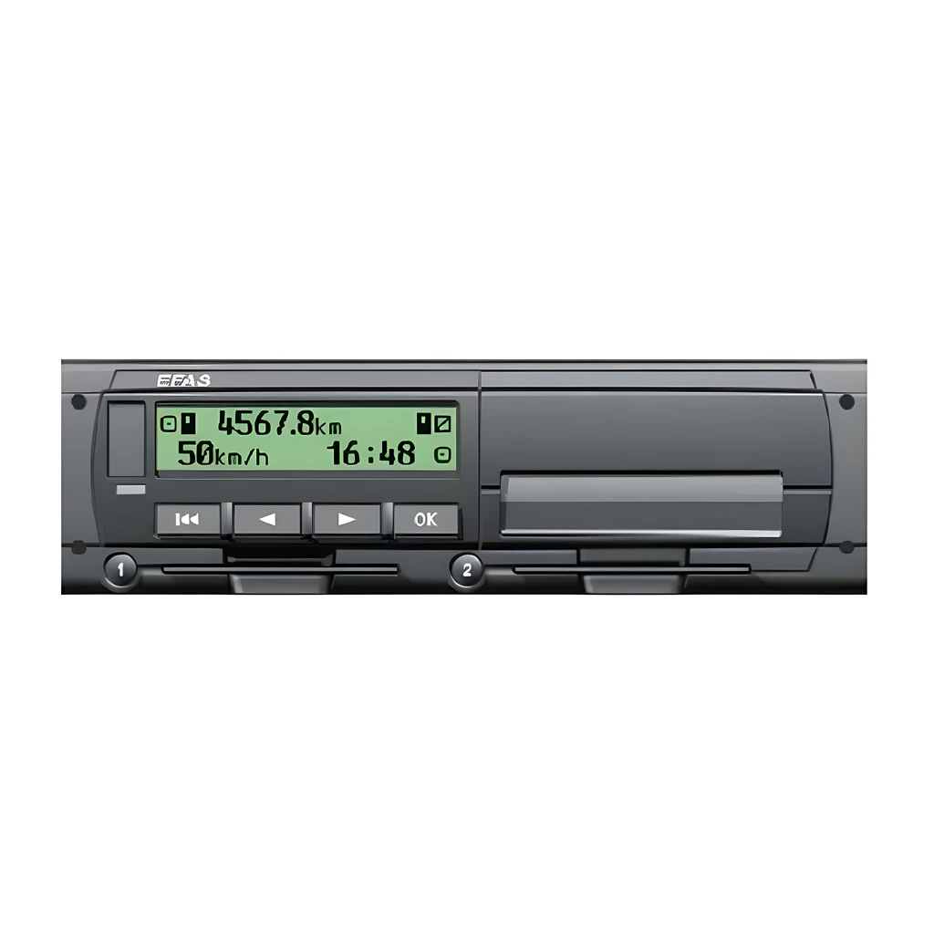 Тахограф EFAS V2 RUS представляет собой небольшой электронный блок с дисплеем, устанавливаемый на передней панели автомобиля. Прибор подключается к датчикам автомобиля и снимает показания о режиме эксплуатации транспортного средства, режиме труда и отдыха водителей.