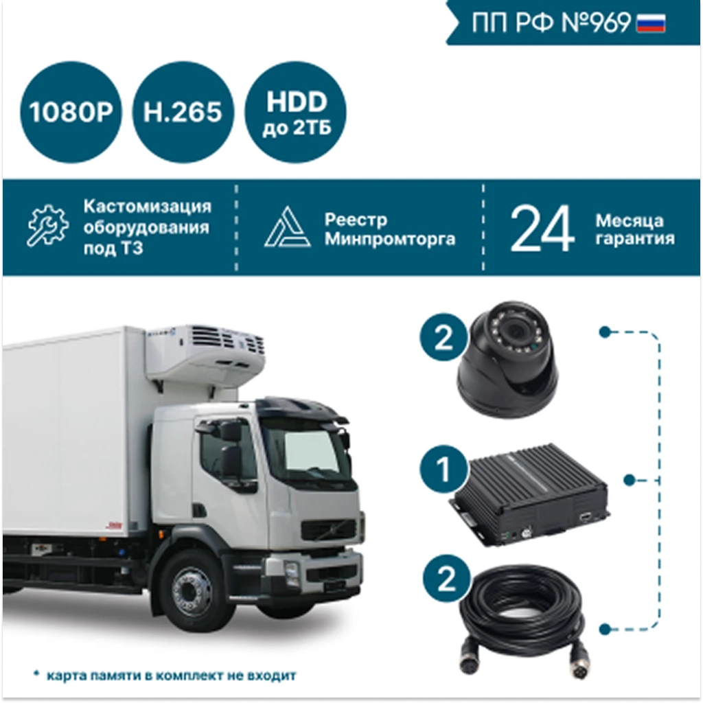 Комплект видеонаблюдения для грузового транспорта на 2 камеры