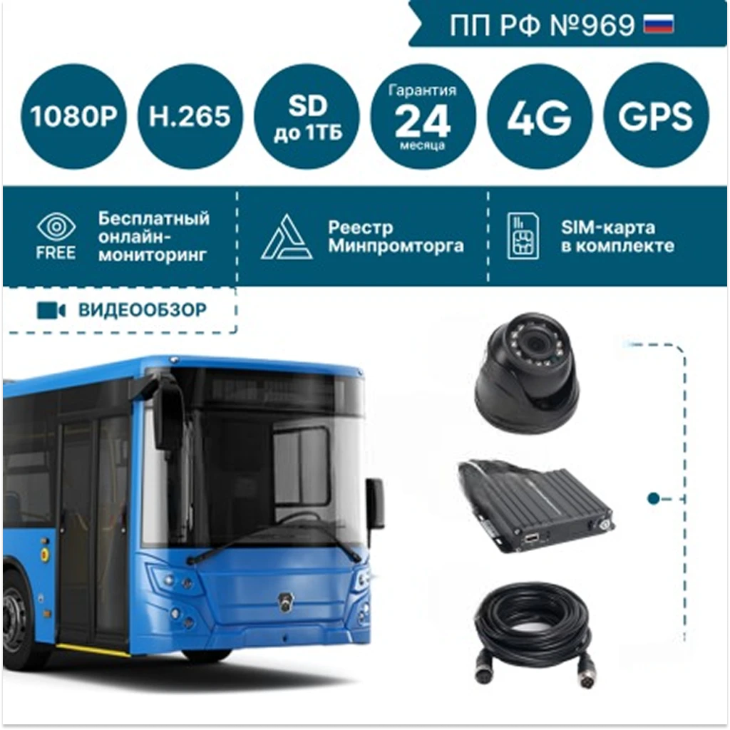 Комплект видеонаблюдения на 4 камеры для общественного транспорта NSCAR BUS401 FullHD_2SD с опциями 4G+GPS/Глонасс
